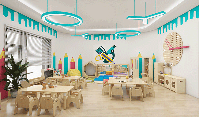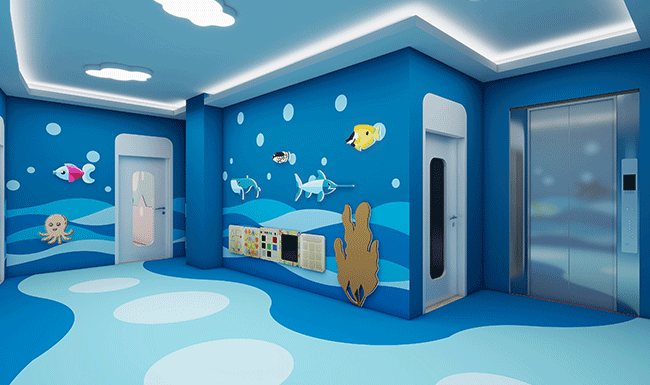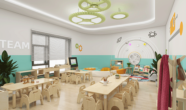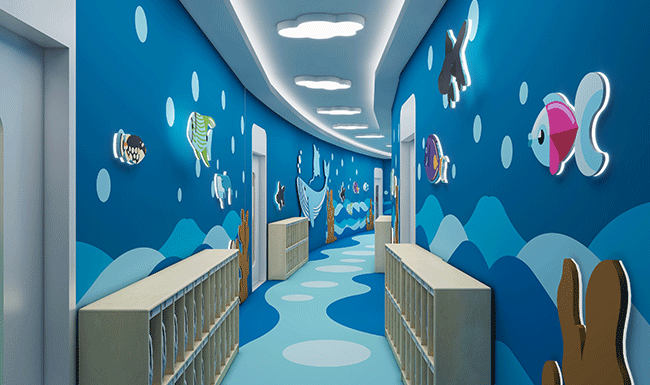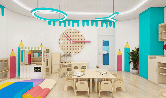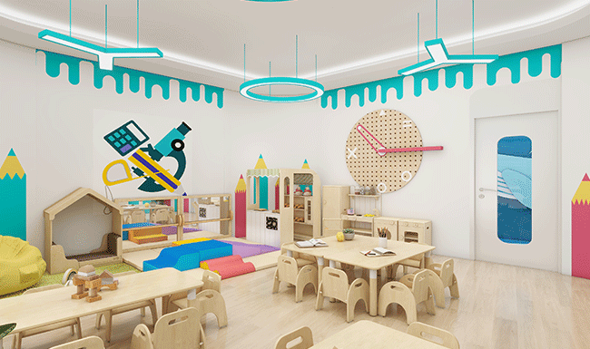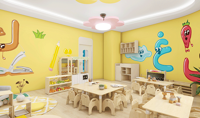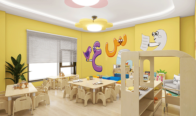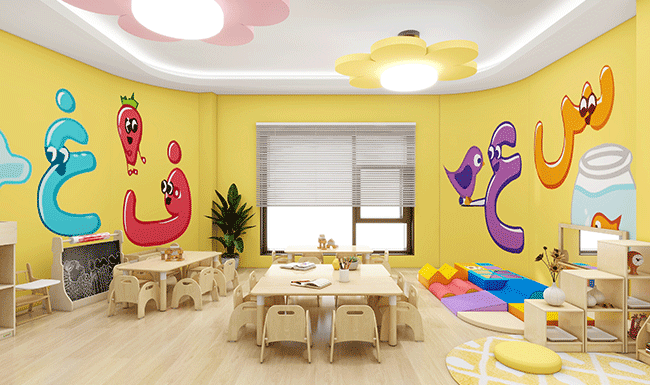 牧童为伊拉克高端幼儿园打造660㎡创意空间。以“快乐学习·自由探索”为核心理念,将阿拉伯文化元素与国际教育方法深度融合。设计出“英语”“科学”“数学”“阿拉伯语”四大主题教室与海洋走廊,通过高饱和度色彩、多感官互动装置及双语环境,激发幼儿潜能。兼顾安全性与趣味性,为0-2岁幼儿打造促进文化认同与认知发展的成长型空间,树立中东幼教新典范。