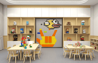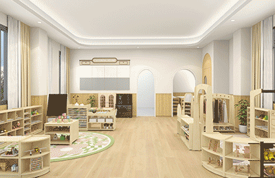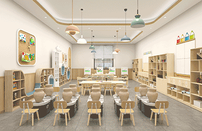 ● 创意美术室:以原木色为基底,点缀低饱和色彩,营造舒适氛围,让孩子们更聚焦艺术创作本身。